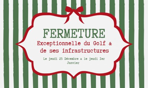 Fermeture exceptionnelle du golf et de ses infrastructures le jeudi 25 décembre et le jeudi 1er Janvier