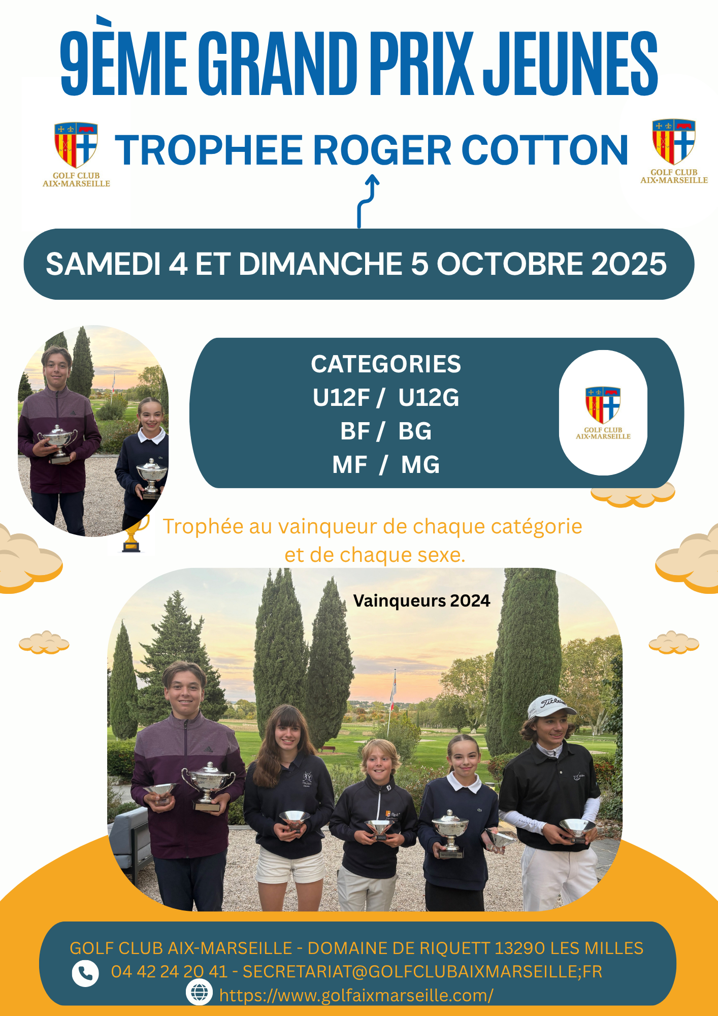 Le Grand Prix Jeunes d’Aix-Marseille – Trophée Roger COTTON va se dérouler les 4 et 5 octobre 2025. Les inscriptions se font directement en ligne avant le vendredi 19 septembre via les liens ci-dessous. Bon tournoi à tous !!